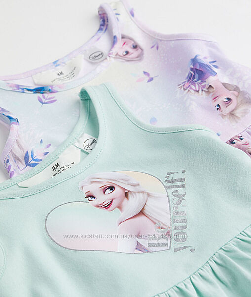 Сукні для дівчаток із комплекту з м´якого бавовняного трикотажу. Без рукавів, відрізні лінією талії, спідниці прилаштовані. Продаються поштучно, бирка на одному. Із нової колекції провідного європейського бренду H&M.Розмір у наявності: 6-8 років, зріст 122-128 см,