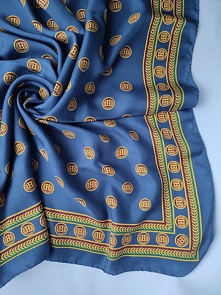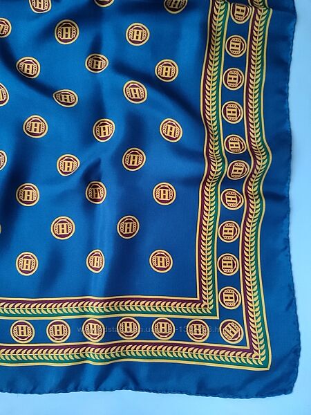Дизайн: Хустка має візерунок з елементами, що нагадують лавровий вінок та літеру "H" у колі, що асоціюється з відомим брендом Ермес( Hermes).
