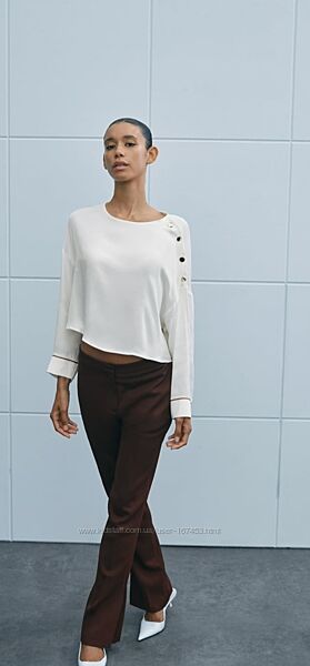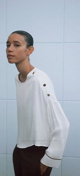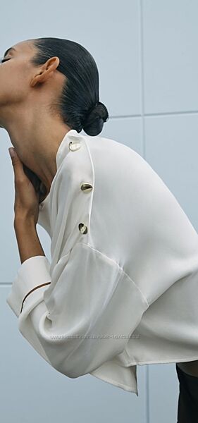 Продам нову атласну сорочку Zara, розмір S. Колір - молочний. Вільного крою, виглядаєневимушено та елегантно. Гарна фурнітура - металеві ґудзики золотого кольору . Довжина 47 см, ширина 60 см, плече 24 см, рукав 42 см.