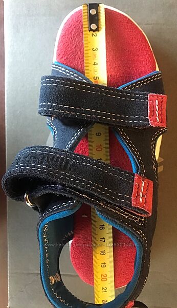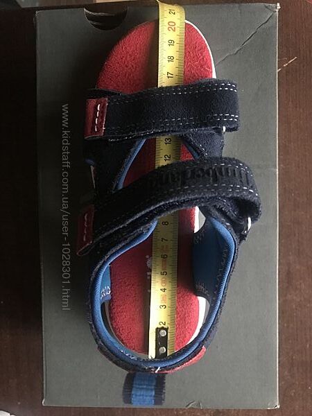 Новые босоножки американского бренда Timberland из натуральных материалов. Легчайшие, практически невесомые! Верх выполнен из натуральной замши, подкладка - из текстиля, стелька - из натуральной замши, обработанной антимикробным средствам, защищающим от потливости и обеспечивающим дополнительный комфорт. Красивое сочетание синего и красного цвета, куплены в отделе для мальчиков, но подходит и девочкам, и мальчикам. Подошва из гибкого материала, ортопедически правильная, идеальная для детской активности. Застёгиваются на две липучки, что позволяет отрегулировать босоножки по ширине и обеспечивает надежную фиксацию. Босоножки оригинальные! Страна-производитель - Бангладеш. За счёт конструкции задней шлейки маломерят на размер - по модели сзади должно оставаться свободное место не менее 1 см., то есть не вся длина стельки функциональна. МАЛОМЕРЯТ НА РАЗМЕР!!!Размер 31 (идёт на 29-30 - 18.5-19 см.) по стельке 19,7-19.8 см., размер 32 (идёт на 30-31 - 19-19.5 см.) - по стельке около 20.5 см. Размер 34 (идёт на 32-33 размер - на ножку 20-20.5 см.) - по стельке 21.7-21.8 см. Замеры - на фото. Новые, в коробке. Отправка по предоплате не менее 100 грн. - компенсация стоимости доставки в две стороны в случае, если Вы не забираете посылку (не возвращается при отказе от посылки). Самовывоз - Киев, Березняки. Обмена и возврата нет.Другие объявления продавца