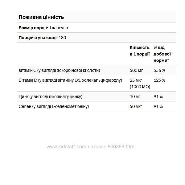 *Містить вітаміни C та D, цинк і селен