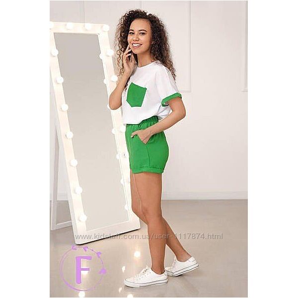 Подробное описание: Розпродаж 42-48р Літній костюм із шортами, софт, креп жатка, Florence