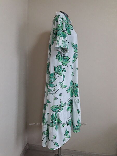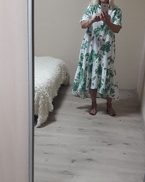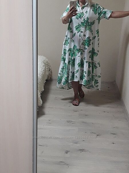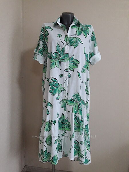 Яркое,эффектное,мега качественное,легкое,просторное платье-рубашка,ассиметрияКрасивая,комфортная легкая модель этого сезона для жарких будней!Платье с рукавом 3/4 и с укороченным вариантом с отворотом на пуговице.Модель-оверсайз,красивого ,свободного,комфортного просторного кроя,А-силуэта,с боковыми карманами,на пуговицах по всей длине,с классическим рубашечным воротником и ассиметричным воланом по низу.Эффектный,всегда в тренде,- цветочный принт!Натуральная,легкая,супер-качественная хлопковая ткань-жатка.Элегантная,стильная,яркая,заметная и очень комфортная модель для жарких будней!