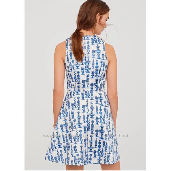 Коротке плаття без рукавів із тканини з малюнком. Приталений верх, шов на талії та злегка розкльошений поділ. Прикрита блискавка і гачки ззаду. З підкладкою.Склад - 100% поліестер Підкладка: 100% поліестер