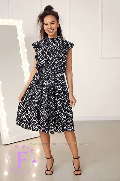 42-48р Літня сукня з софту в горошок з воланами, Emily летнее платье