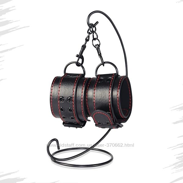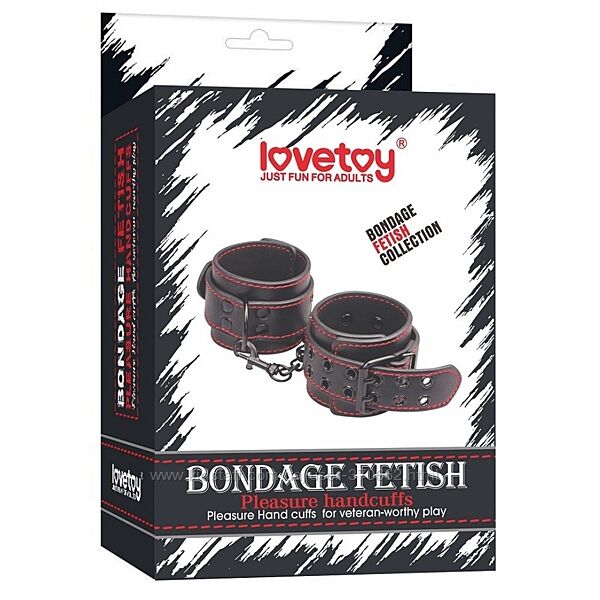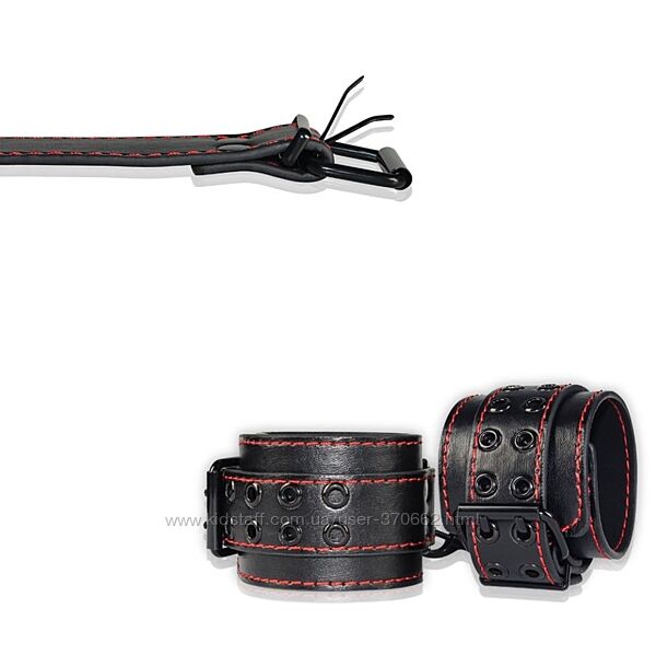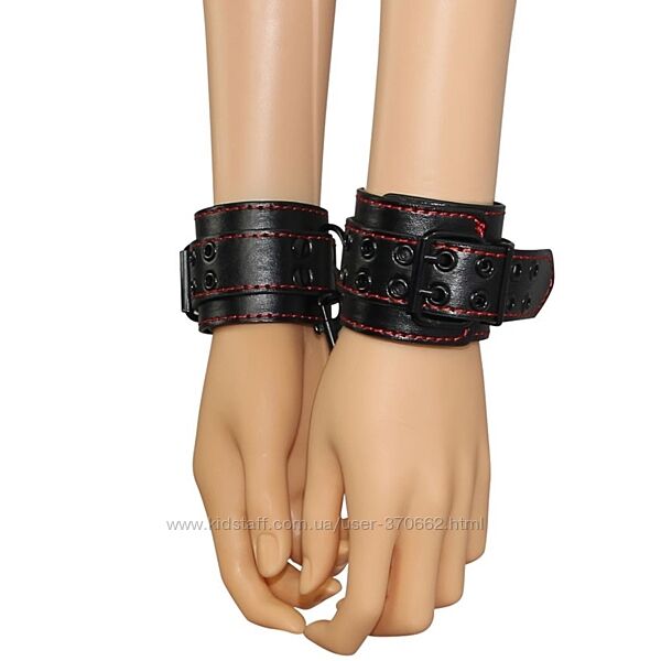 Подробное описание: Наручники черные с красной строчкой Bondage Fetish Pleasure Handcuffs