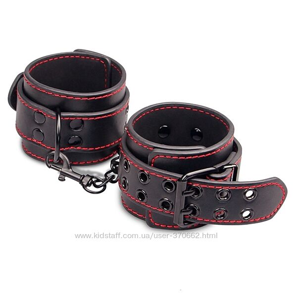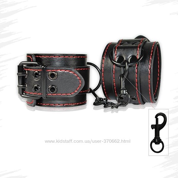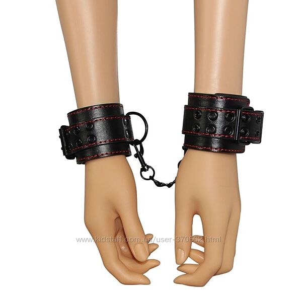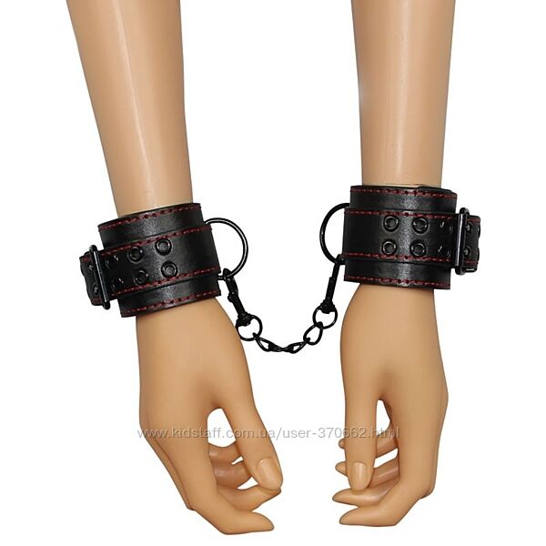 Наручники придадут Вашим интимным отношением немного остроты!Чёрные наручники с красной строчкой с соединением на цепи.