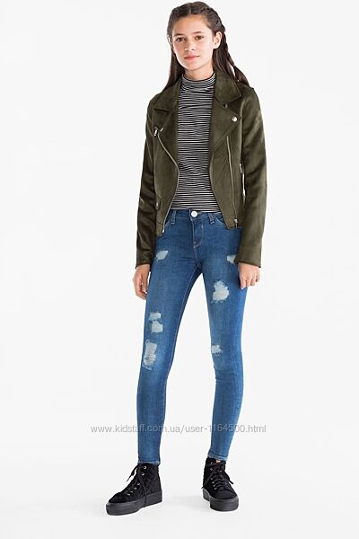 Джинси із потертостями для дівчинки 8-9 років. Застібаються джинси на гудзик. У поясі є утяжки.Брендовий магазин C&A Німеччина