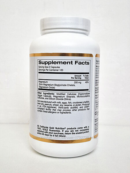 Подробное описание: Магній бісгліцинат хелат California Gold Nutrition, 200 мг, 60/240 капсул