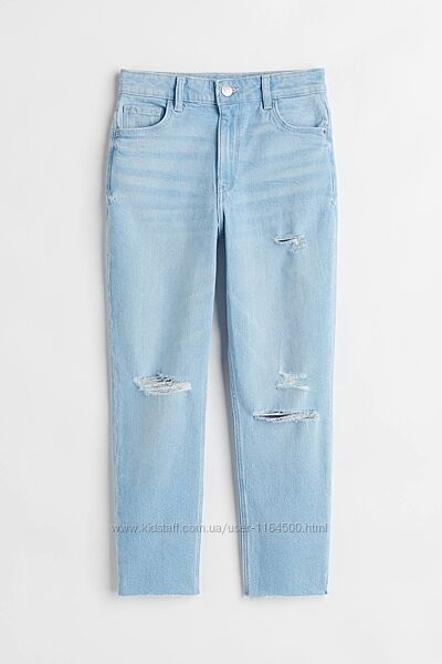 Блакитні джинси для дівчинки 9-10 років. Застібаються на гудзик/блискавку. У поясі є утяжки. Крій: relaxed.Брендовий магазин H&M Швеція