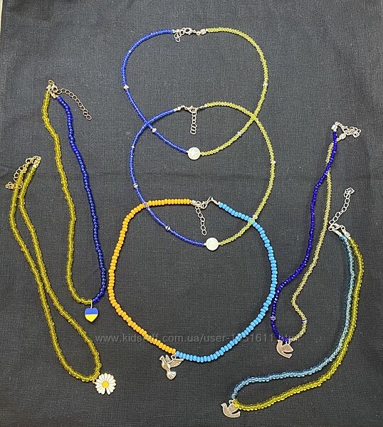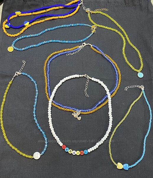 Воплощение нежности и патриотизма. В наличии патриотические бусы, чокери, подвески. Изготовлены из чешского стекла, бисера, бусин.Доступно в разных дизайнах. В единственном экземпляре!