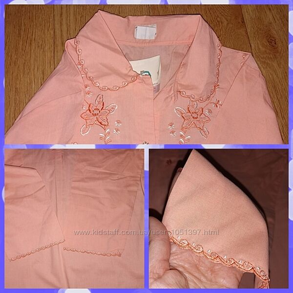 Красивая длинная ночная рубашка женская, красивого абрикосового цвета, с длинным рукавом. Рукав внизу прямой с отделкой ., ворот с отделкой, застегивается на пуговички. Впереди красивая вышивка. рубашка с кармашком. Плотность средняя, ближе к тонкой,. мягкая приятная ткань как к телу, так и на ощупь.