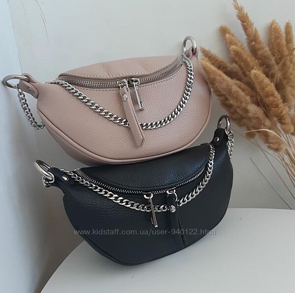 Бананка женская кожаная Итальянская с цепочкой поясная сумочка