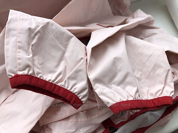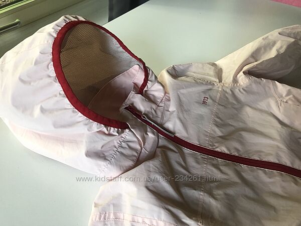 Отличная куртка/ветровка для девочки.Сама ветровка бледно-розового цвета с красными элементами.