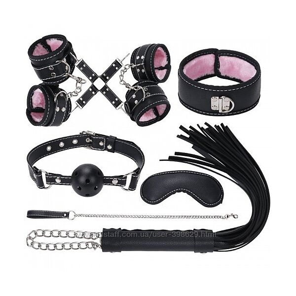 Стильный и привлекательный набор Bdsm Leather Bondage позволит реализовать Ваши самые жаркие и сокровенные фантазии, связанные с доминированием и подчинением.С помощью Bdsm Leather Bondage Вы сможете сковать партнера по рукам и ногам. Для этого в наборе есть поножи с наручниками, а также крестовина, предназначенная для соединения их в единую систему фиксации. Их можно использовать вместе, или ограничиться лишь оковами на запястья и лодыжки.Все элементы изготовлены из особого материала, очень приятного к телу, что обеспечит комфорт для того, кто находится в уязвимом положении.Также в наборе Вы найдете ошейник, поводок и плотную маску на глаза. Она позволит сделать так, чтобы все Ваши действия стали для партнера неожиданными, более острыми по ощущениям. Регулируемый кляп-шарик с отверстиями для дыхания позволит лишить связанного возможности говорить и возражать, а с помощью плетки Вы добьетесь идеального послушания. Будьте аккуратны - этот аксессуар способен на ощутимые и хлесткие удары.В комплект входит:- ошейник с поводком,- кляп-шарик,- наручники,- поножи,- крестовина для фиксации,- маска,- плеть.Материал - искусственная кожа + металл, плотный и прочный. Добротно сделанное изделие