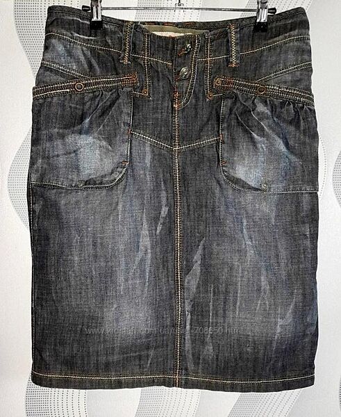 Классная стильная юбка б/у, в ОТЛИЧНОМ практически новом состонии ткань : джинс цвет: черный с винтажными потертостями размер: 30 параметры: ПОТ 40 см, ПОБ 48 см, длина 58 см