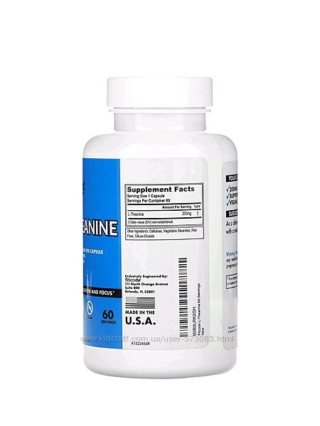 Подробное описание: Fitcode L-теанин 200 мг - 60 капсул / США