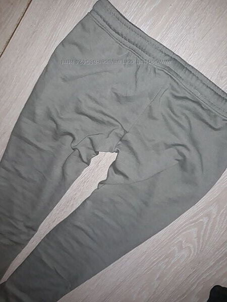 Фірмові, теплі спортивні штани розмір по бирці XL, але реально M На талії резиночка та канатик для регулювання талії Склад 60% бавовна та 40% поліестер. Усередині начіс. Стан відміннийЗаміри: довжина 104.5 см, кроковий шов 80 см, талія 47.5 см, попа 61.5 см, посадка 26.5/36 см, ширина штанини біля маті 34 см, ширина резиночки внизу 12,5 см