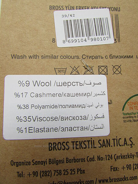 Мужские зимние носки с шерстью и кашемиром р.39-42