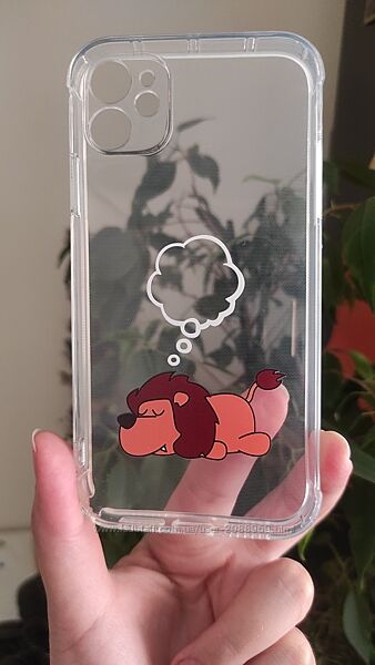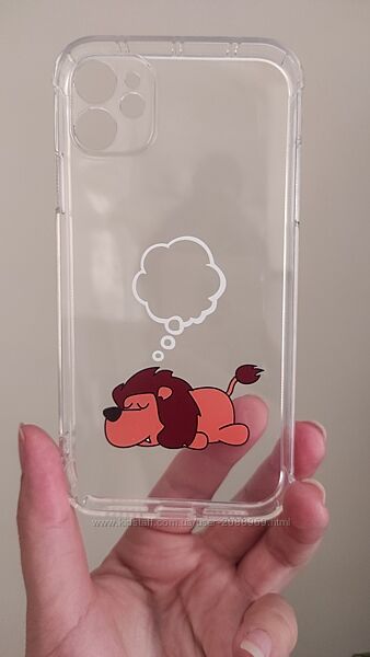 Ударостійкий прозорий чохол з захисними кутами телефону для iPhone 11 мультфільм Лев. м´який TPU телефон задня кришка.