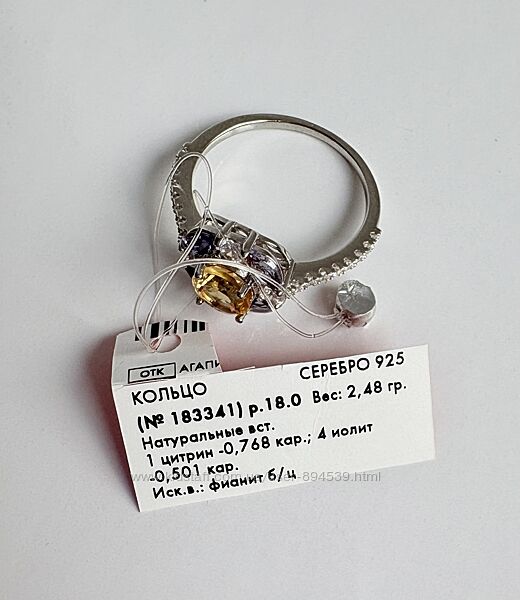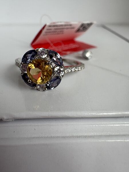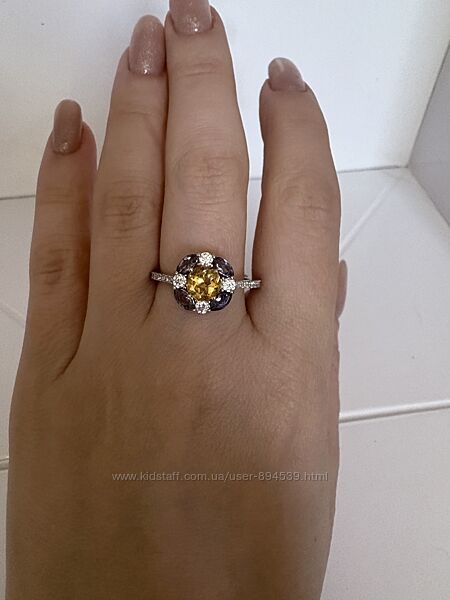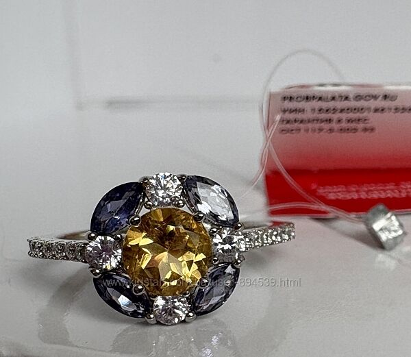 Серебряное кольцо с цитрином, иолитами водный сапфир