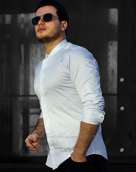 Подробное описание: Белые мужские рубашки с воротником стойкой. ТМ Rubaska