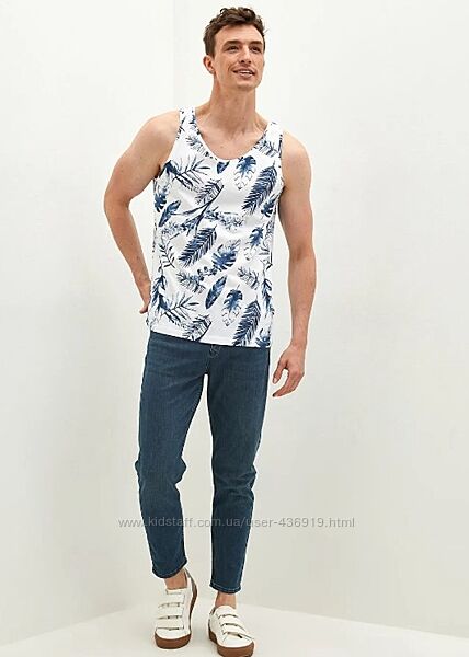 Белая мужская майка LC Waikiki/ЛС Вайкики с синим лиственным принтомсостав-100% хлопок