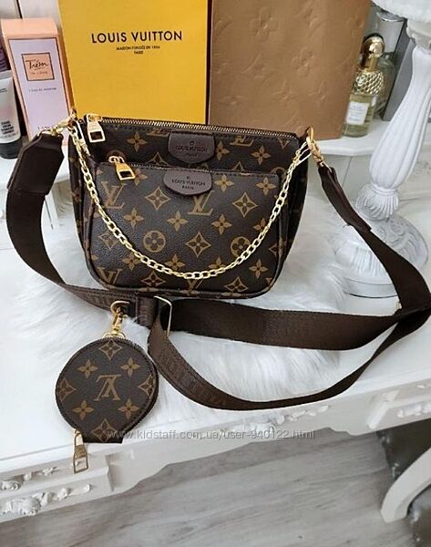 сумка через плечо с широким ремнем Сумка Луи Виттон 3 в 1. З ланцюжкомРозмір великого клатча 22х15х5 см
