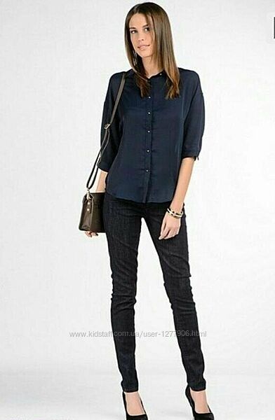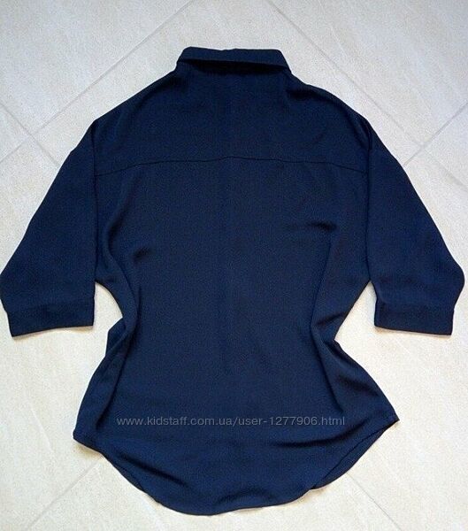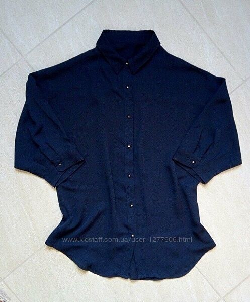 Шифоновая блузка Kira Plastinina с застежкой на пуговки и свободным силуэтом. Модель с рукавами длиной 3/4 и отложным воротником. Уплотненный шифон. Цвет: темно-синий (пуговицы-золотые) Длина рукава: 3/4: 52 см Длина изделия: по спинке: 67 см Сезон: демисезон Бирки срезаны! ------ Размер M но подойдет и на L Ориентируйтесь на замеры : Обхват груди : 88-92 Обхват талии : 68-72 ------ Доставка: Новая Почта Предоплата 100% Без торга,обмена,возврата.