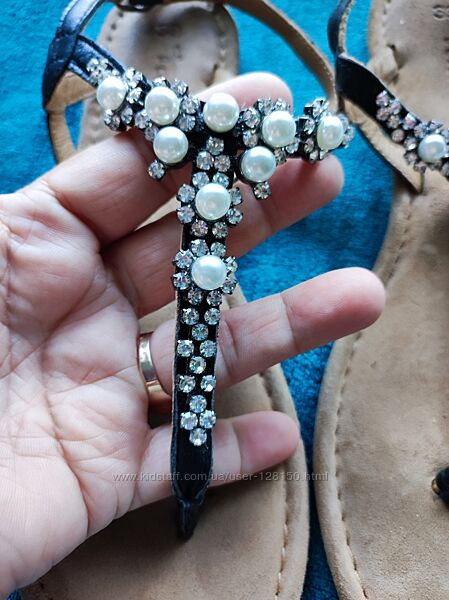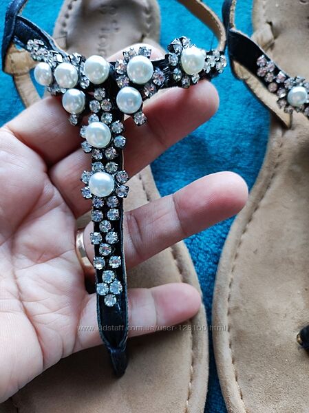 Шикарнючі літні босоніжки фірми Tamaris з кристалами і перлинами.Камінці не пласмаски,дуже гарно переливається на сонці.Перлинки також тяжкенькі і виглядають як справжні.Босоніжки мягесенькі,комфортні.Шкіра тоненька,шви нігде не труть.Стелька замшева.Заміри показала на фото.Замовляла собі,але мені вони трохи довгуваті в пальцях(в мене пальці коротенькі) і це не дуже гарно виглядає.Вдягала разів зо п´ять-по взуттю це видно тільки на підошва,навіть сліду на устілці немає.Другие объявления продавца