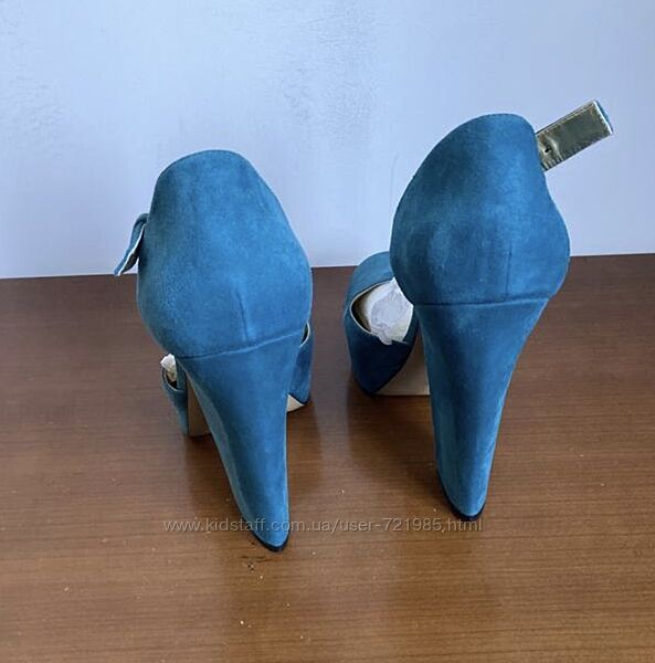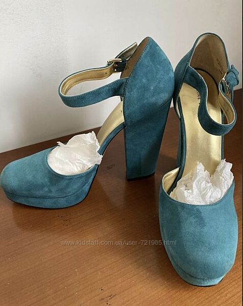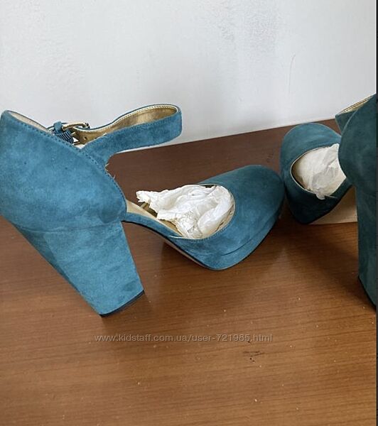Туфли в отличном состоянии надеты 1 раз, замш натуральный, красивый бирюзовый цвет, размер 11us, полнота средняя, наш 42, стелька 28 см, каблук 14 см, колодка удобная