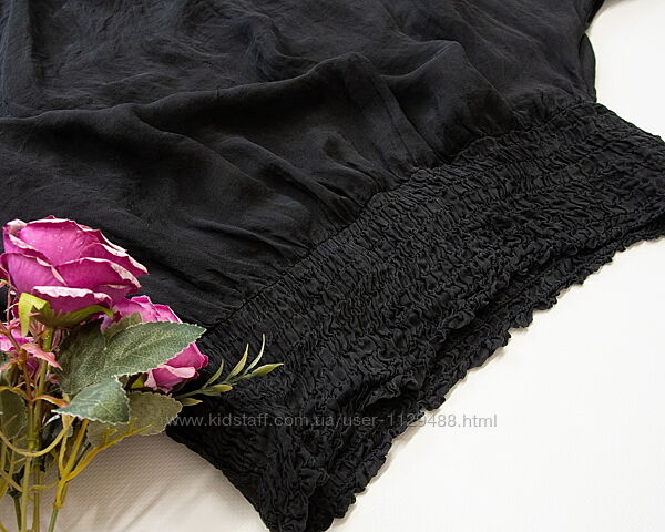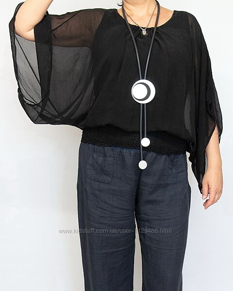 Нежная, воздушная, свободного кроя. Двухслойная. Верхний слой объемный, из натурального шелка, нижний слой из мягкого эластичного натурального дышащего трикотажа. Выглядит очень интересно. Легко сочетается с любым низом.