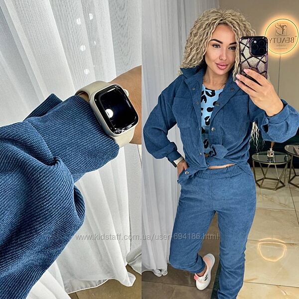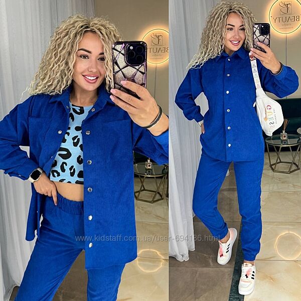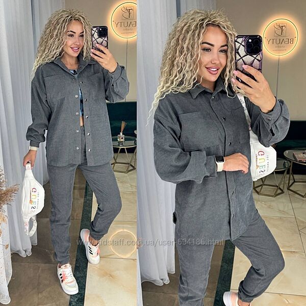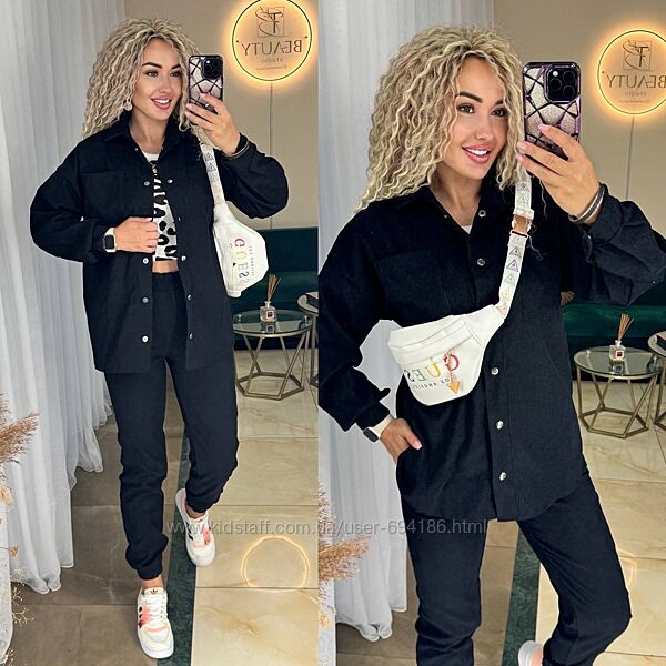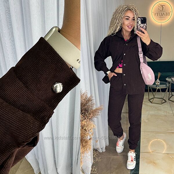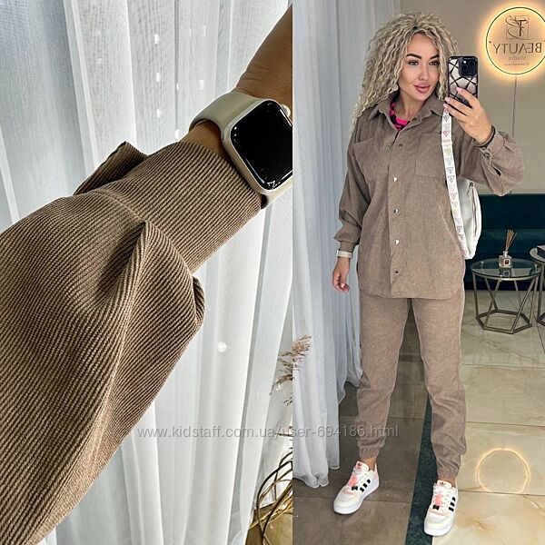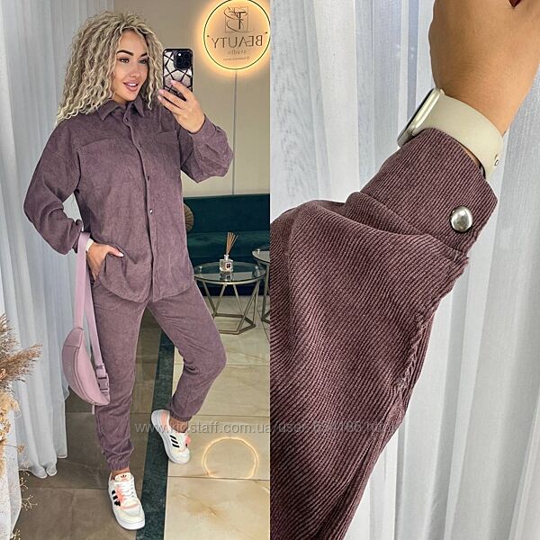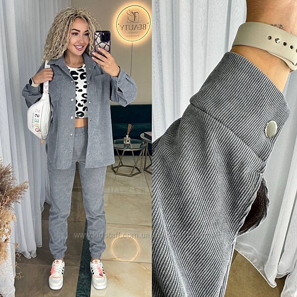 ✔️Ультрамодний костюм відмінної якості 👌 Кнопки на манжеті та на сорочці робочі , на грудях кишеньки. Брюки з боковими кишенями, талія і манжети на гумці. ⠀