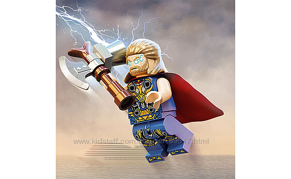Культові персонажі Marvel. Запросіть мініфігурки Тора, Могутнього Тора та Горри, щоб пограти з ними творчо та поставити їх на полицю, а також тіньового монстра зі збірними шарнірними руками та пазурами.