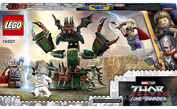 Набір LEGO Marvel Атака на Новий Асгард (76207) порадує персонажів від 7 років і старше захоплюючою пригодою Тор: Любов і грім від Marvel Studios. Супергерої борються із жахливою істотою з дитячої уяви!Дивовижний набір з монстром для фанатів Тора . У наборі з величезним монстром та супергероями діти можуть зіткнутися з істотою як із кошмару. У цей набір з кубиків входять 3 популярні мініфігурки: Горра, яка закликає тіньового монстра, Тор із сокирою Громовержця та Могутній Тор із молотом Мьольніра. Величезний монстр має шарнірні руки та пазурі для веселощів та кумедних поз. Щоб зробити складання ще цікавішим, додаток «Інструкції зі складання LEGO» надає інтуїтивно зрозумілі цифрові інструменти для візуалізації, масштабування та повороту моделі.