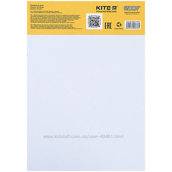 Блокнот-планшет Kite Snoopy SN21-194-4, A5, 50 аркушів, клітинка