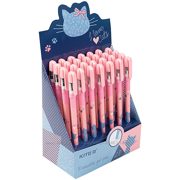 Ручка гелева пиши-стирай Kite Cat K21-068-01, синя