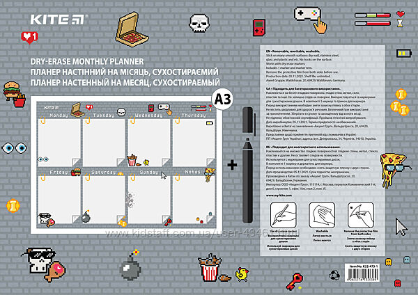 Планер настінний на тиждень Kite Pixel K22-473-1, А3