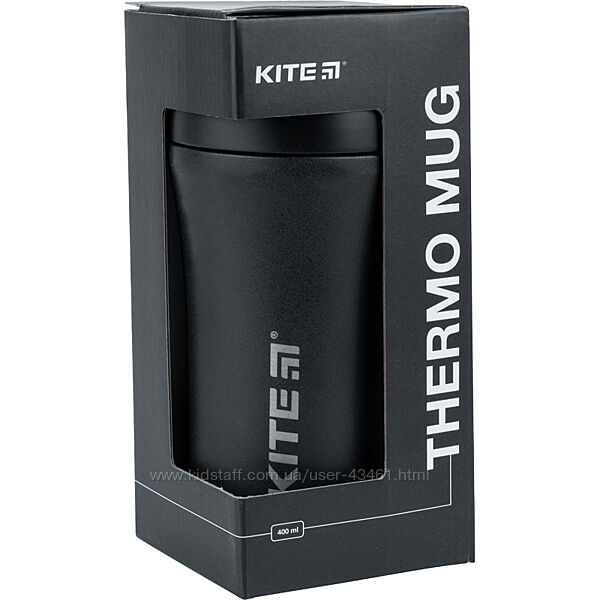 Термокружка з трубочкою Kite K22-457-01, 400 мл, чорна