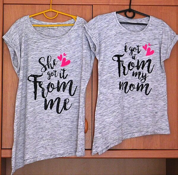 Футболки LC Waikiki casual, family look, мама- доця, р 140-146 та М дорослаНадписи з пайєтками "She got it From me" & "I got it from my mom"