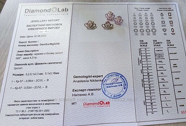Отправка товара наложенным платежом с частичной предоплатой в 1000 грн . Так мы будем уверенны что Вы точно придете за товаром и реально заинтересованны выбранным Вами изделием .Спасибо за понимание.Красивые серьги из настоящего белого золота 14 карат ( наша 585 проба) и синтетических бриллиантов весом 1.09 карат ( каждый камень 5.2 мм) Размер сережек : 1.8 х 1.5 см Вес : 4.21 гр К серьгам идет сертификат. Производитель Индия .