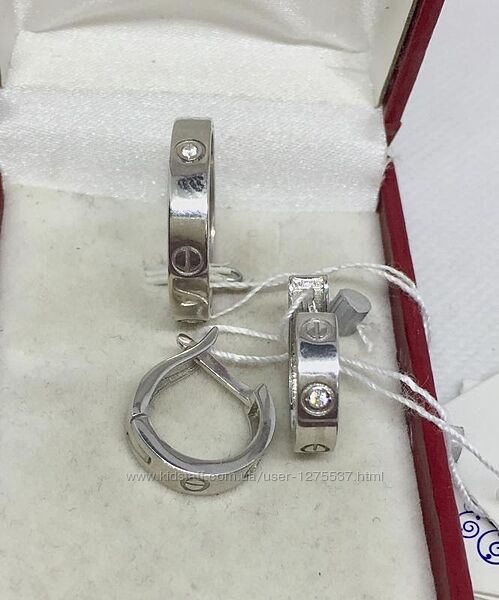 Серьги вес: 2,60 гр. Диаметр 14 мм. Ширина 4 мм. Камень диаметром 1,5 мм. Цена 865 грн.