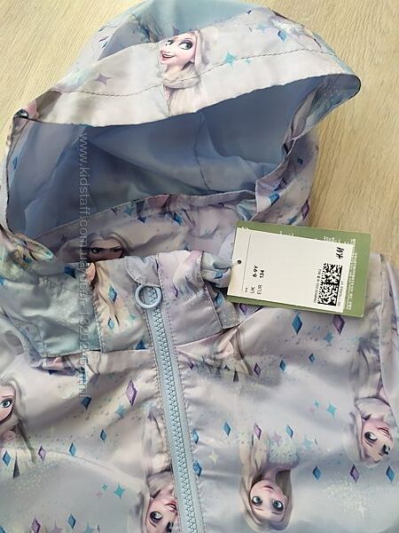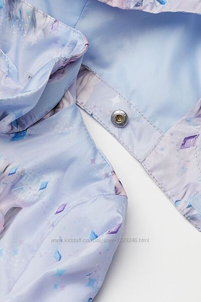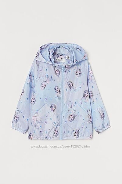 Ветровка из ткани с рисунком Ельзы фирмы H&M.Воротник стойка, а также съемный капюшон на подкладке. Молния с защитой подбородка от царапин. Скругленные накладные карманы спереди. Обтянутая резинка снизу на рукавах и по нижнему краю. На подкладке.