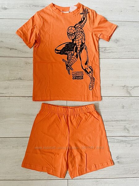 Піжама від H&M з м,якого трикотажу , футболка з принтом супер героїв попереду і шортами- мають еластичную талію на резинці РІСТ 110-116 ( футболка довжина 46 ширина 34 , шорти талыя 27 довжина 31 см )122-128 ( футболка довжина - 50 ширина -37 , шорти талія 29 довжина 34 см )134-140 ( футболка довжна 54 ширина 40 , шорти талія- 31 довжина 39 см )СКЛАД : хлопок 100% ЦІНА за 1 ШТ !
