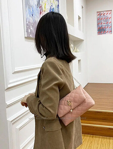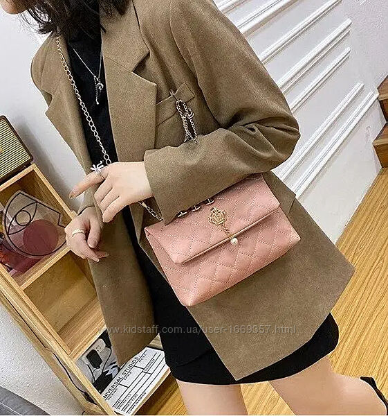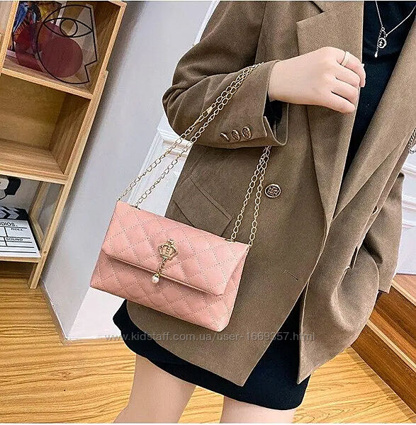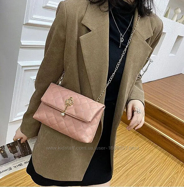 Сумка изготовлена из искусственной кожи, закрывается на кнопкуСумка имеет один отдел. Длина цепочки 115 см