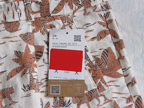 Нові жіночі шорти від фірми C&A Yessica. Пояс не тягнеться, спереду є по 1 втачній складці, є бокові кишені. Розмір європейський: 34 (наш приблизно 40) Склад: 100% льон. Розмір 34: Довжина виробу: 43 см, напівобхват талії: 36 см, напівобхват стегон: 49 см, висота посадки: 24 см, ширина штанини вгорі: 30 см, ширина штанини внизу: 29 см.
