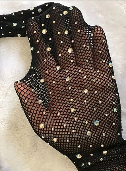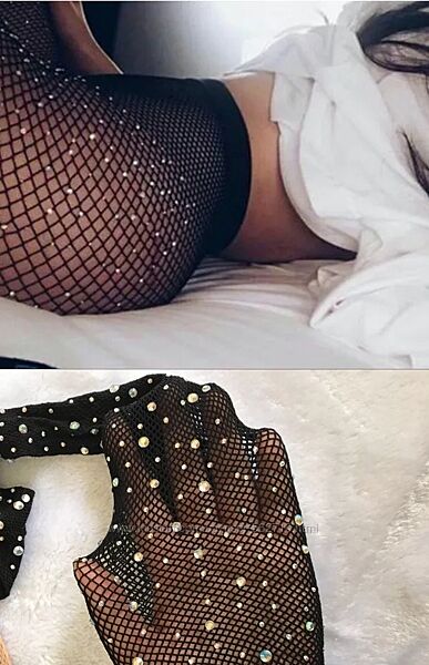Эксклюзивные бесшовные колготки в сетку украшены небольшими сверкающими кристаллами в переплетении нитей.
