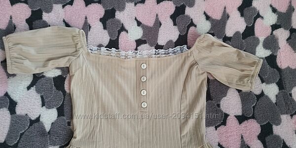 Гарна сукня з відкритими плечима бузкова та бежева р. XS-S
