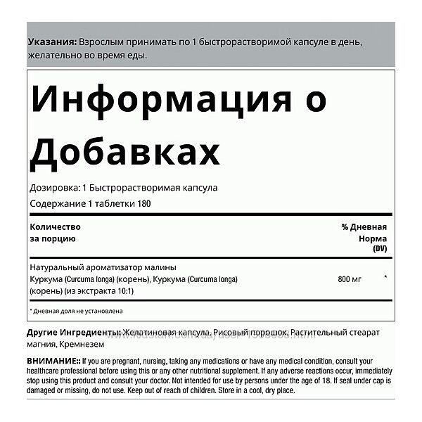 Подробное описание: Комплекс з куркумою Turmrric curcumin 800 мг, 180 капсул, США.