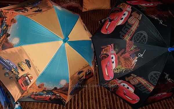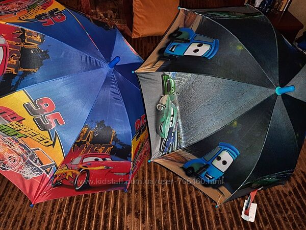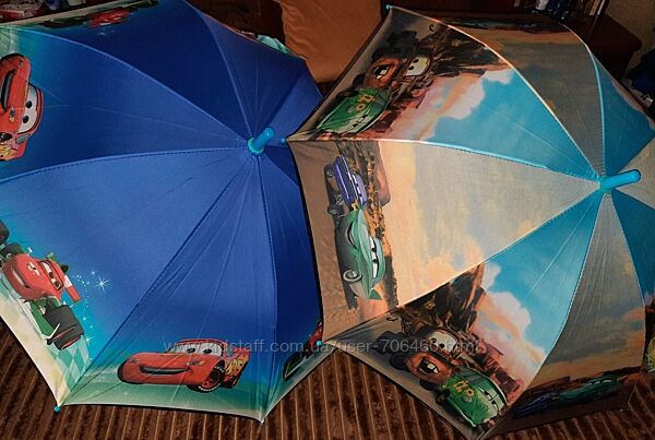 Яркие, классные, мультяшные зонтики-трость "Тачки" в ассортименте. Со свистком.Полуавтомат, 8 спиц, длина в сложеном виде 66 см, материал купола полиестэр, диаметр купола 88 см.